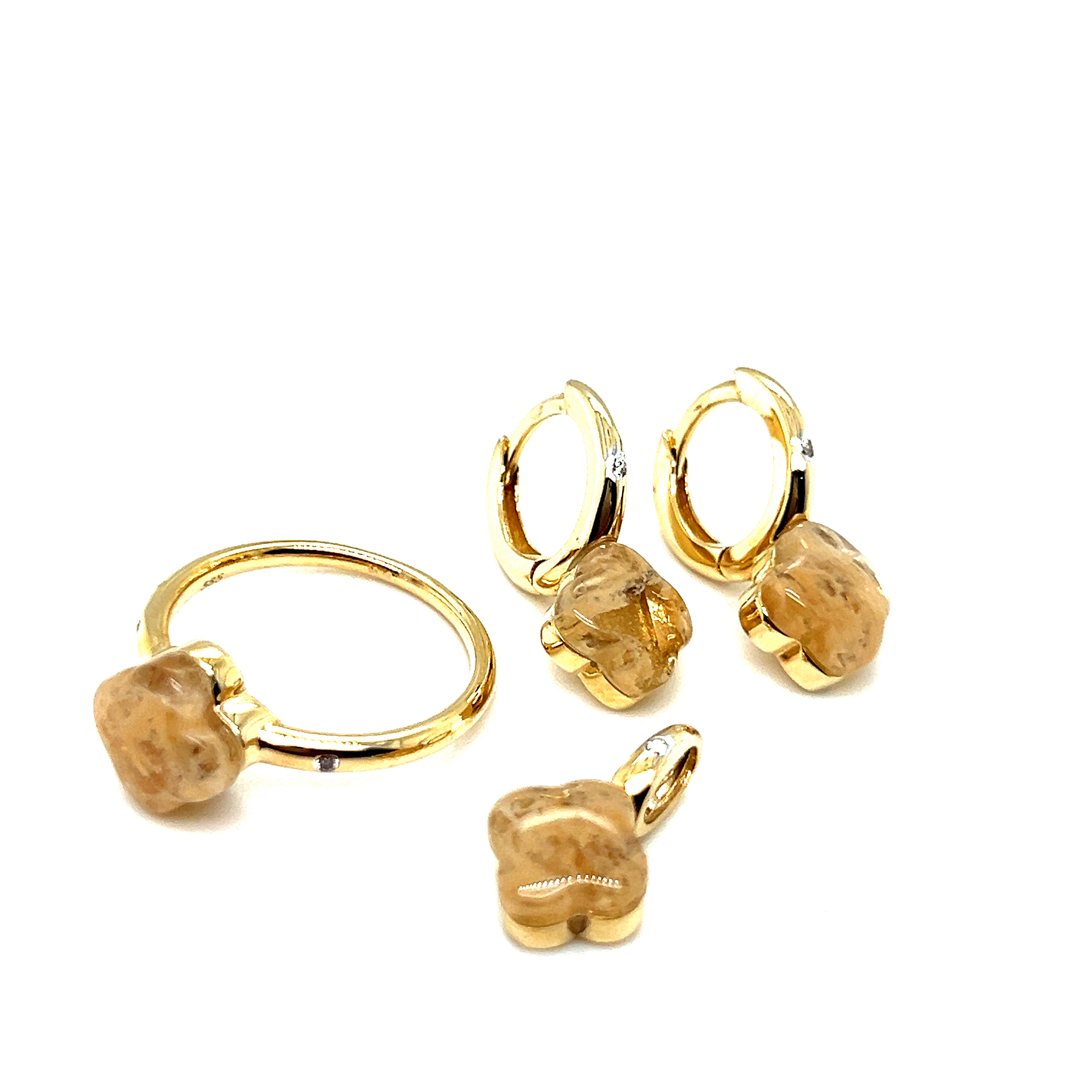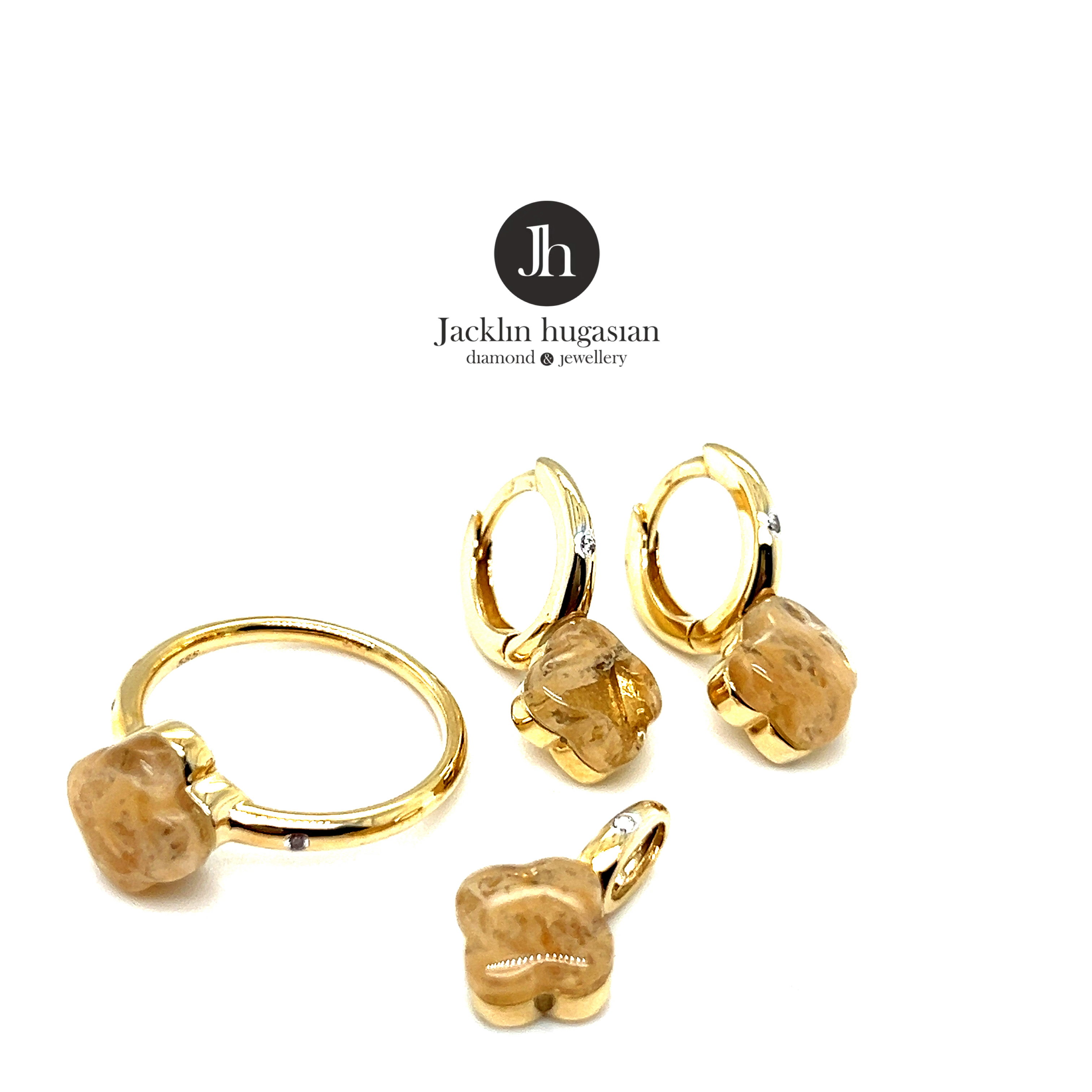 Комплект от “Jacklin hugasian” в жълто злато с "Косите на Венера"обеци и пръстен
