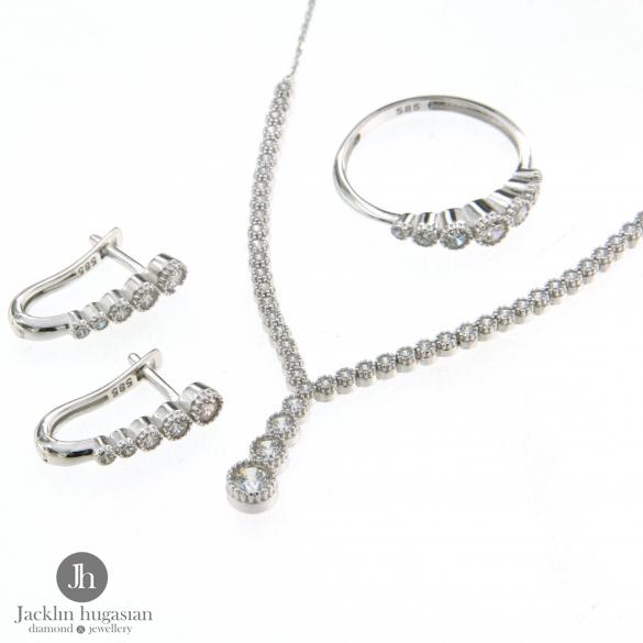 Колие от "Jacklin hugasian" в бяло злато с цирконии. Дължина колие 38 см /с удължител/.