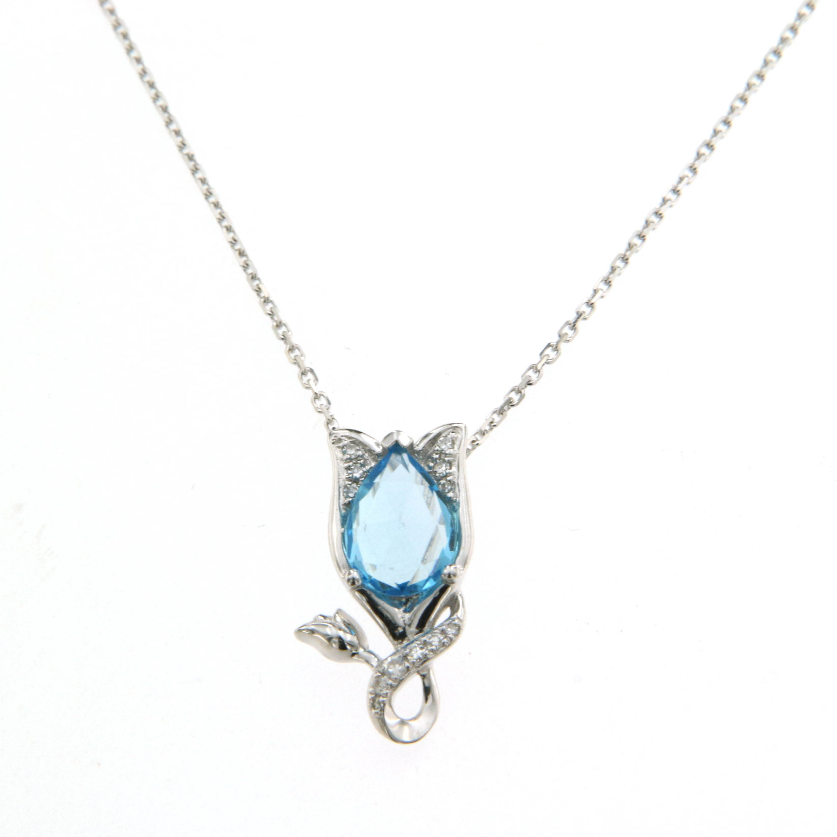 Колие от "Jacklin hugasian" в бяло злато с диаманти и естествен син топаз