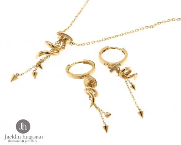 Колие от " Jacklin hugasian " в жълто злато,гланц със цирконий.