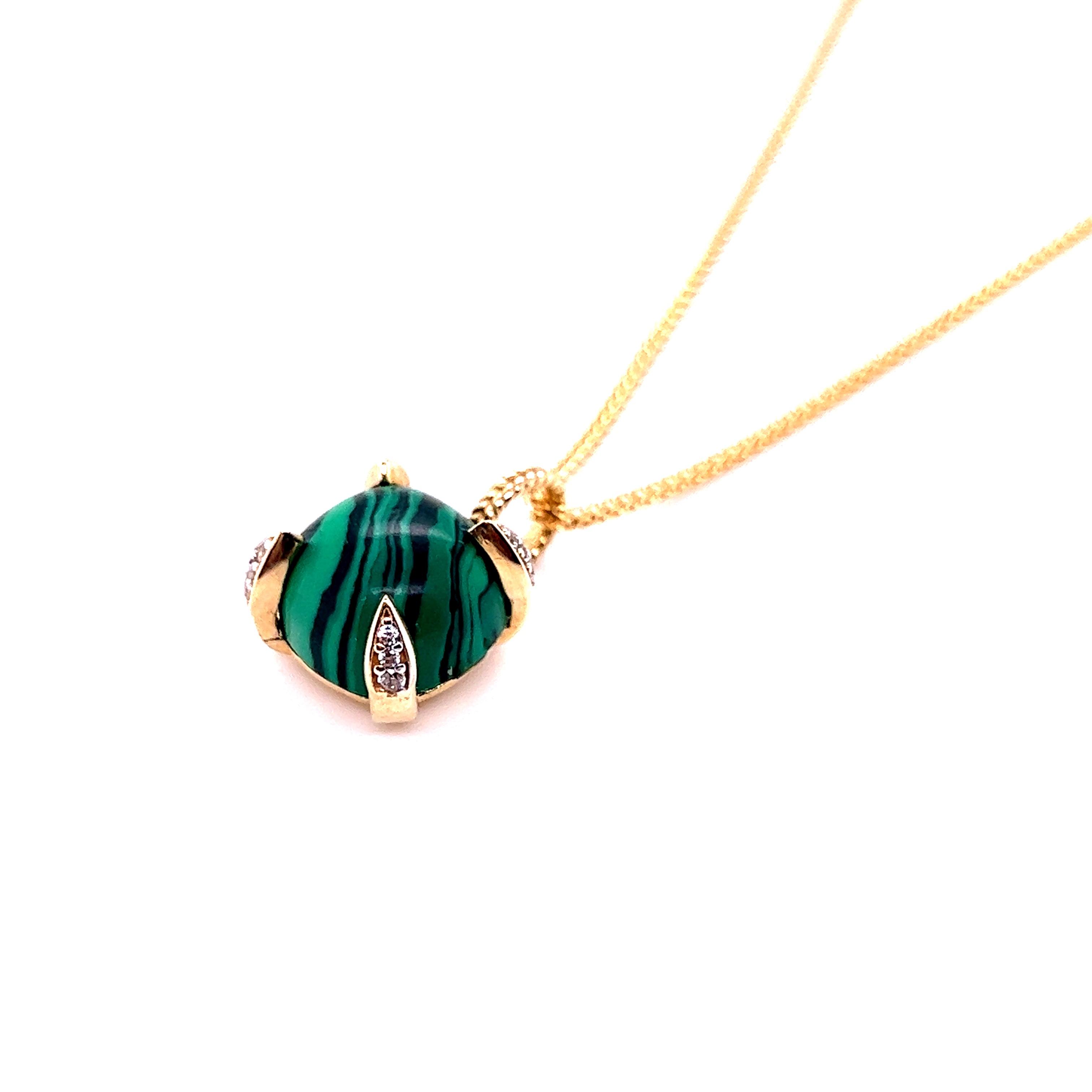 Медальон от “Jacklin hugasian” в жълто злато с малахит и цирконии.