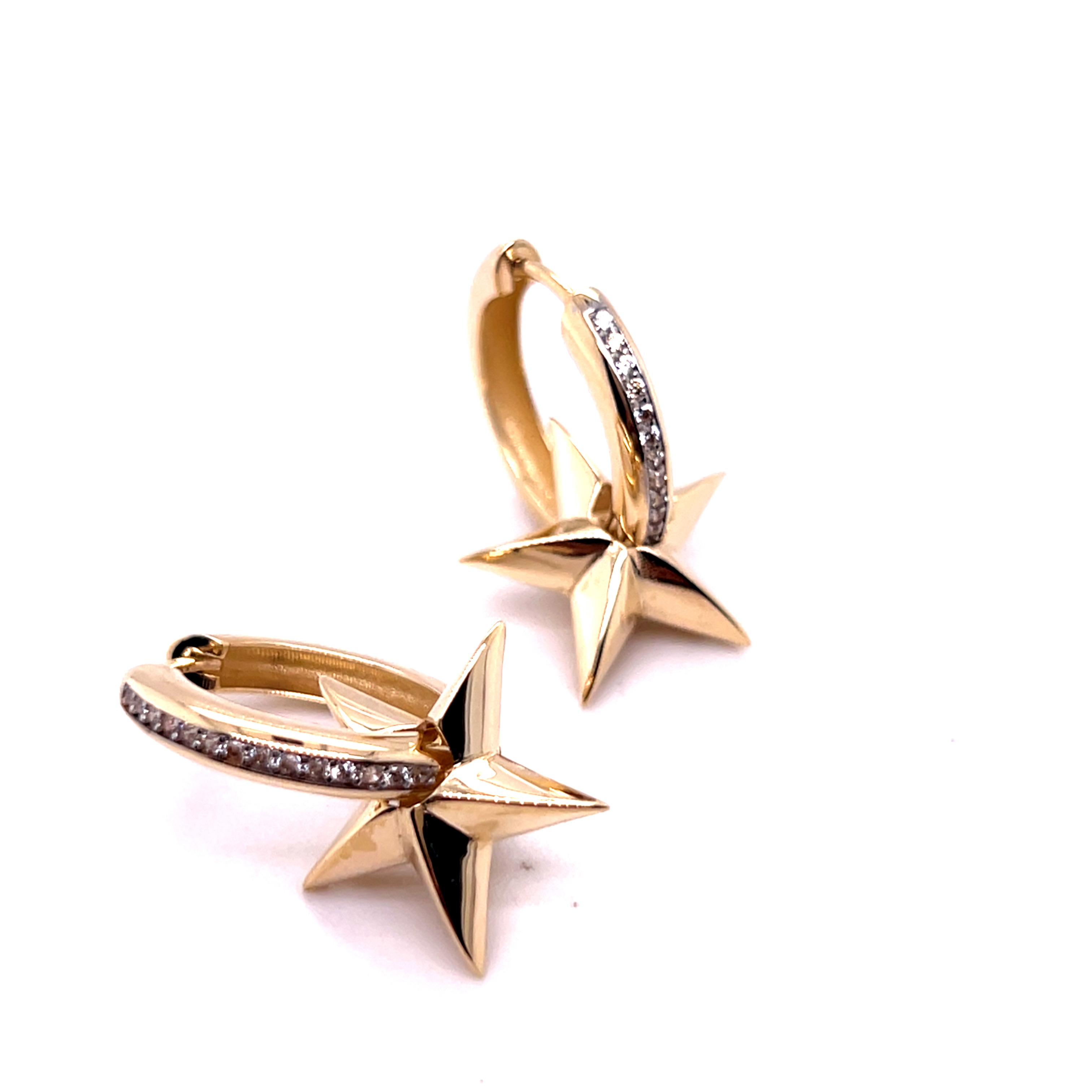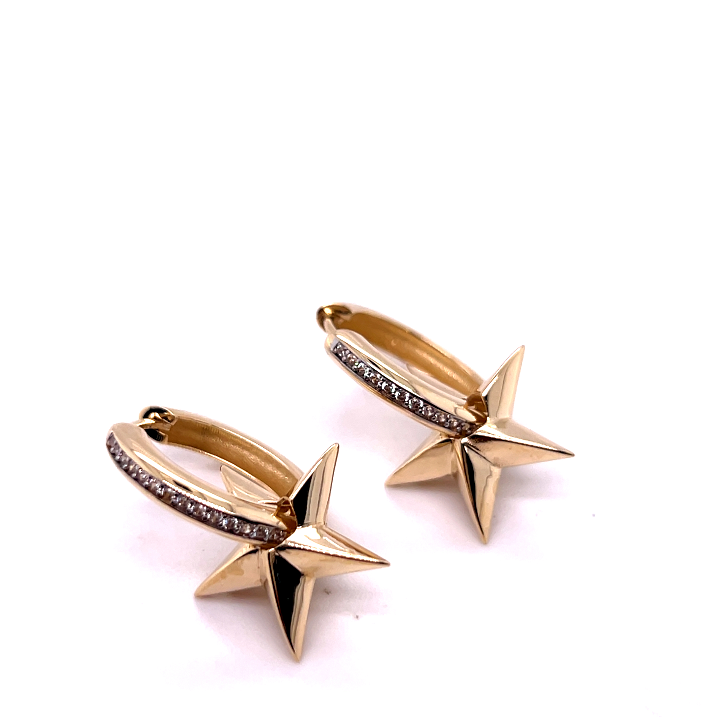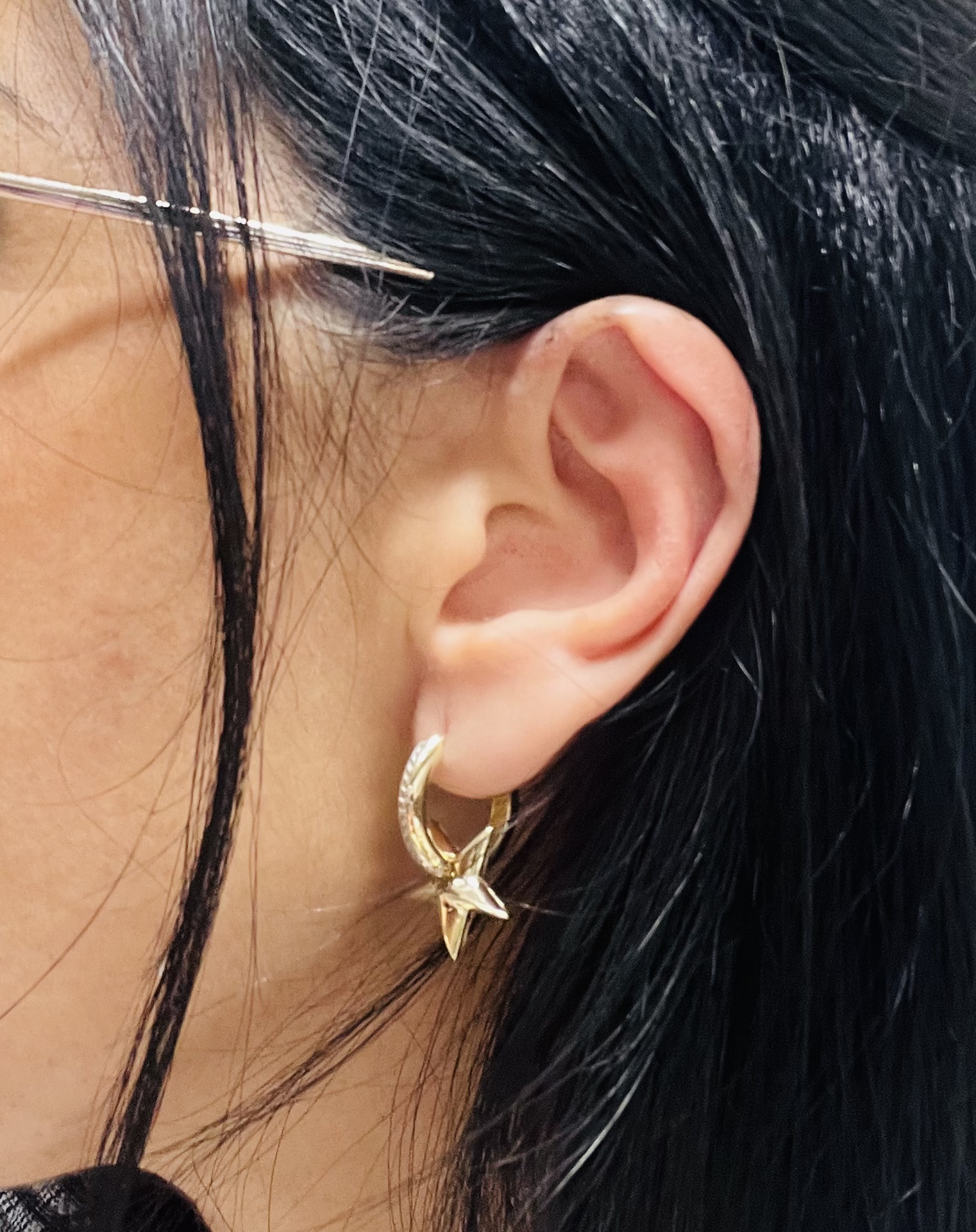 Обеци от “Jacklin hugasian” в жълто злато гланц с циркони