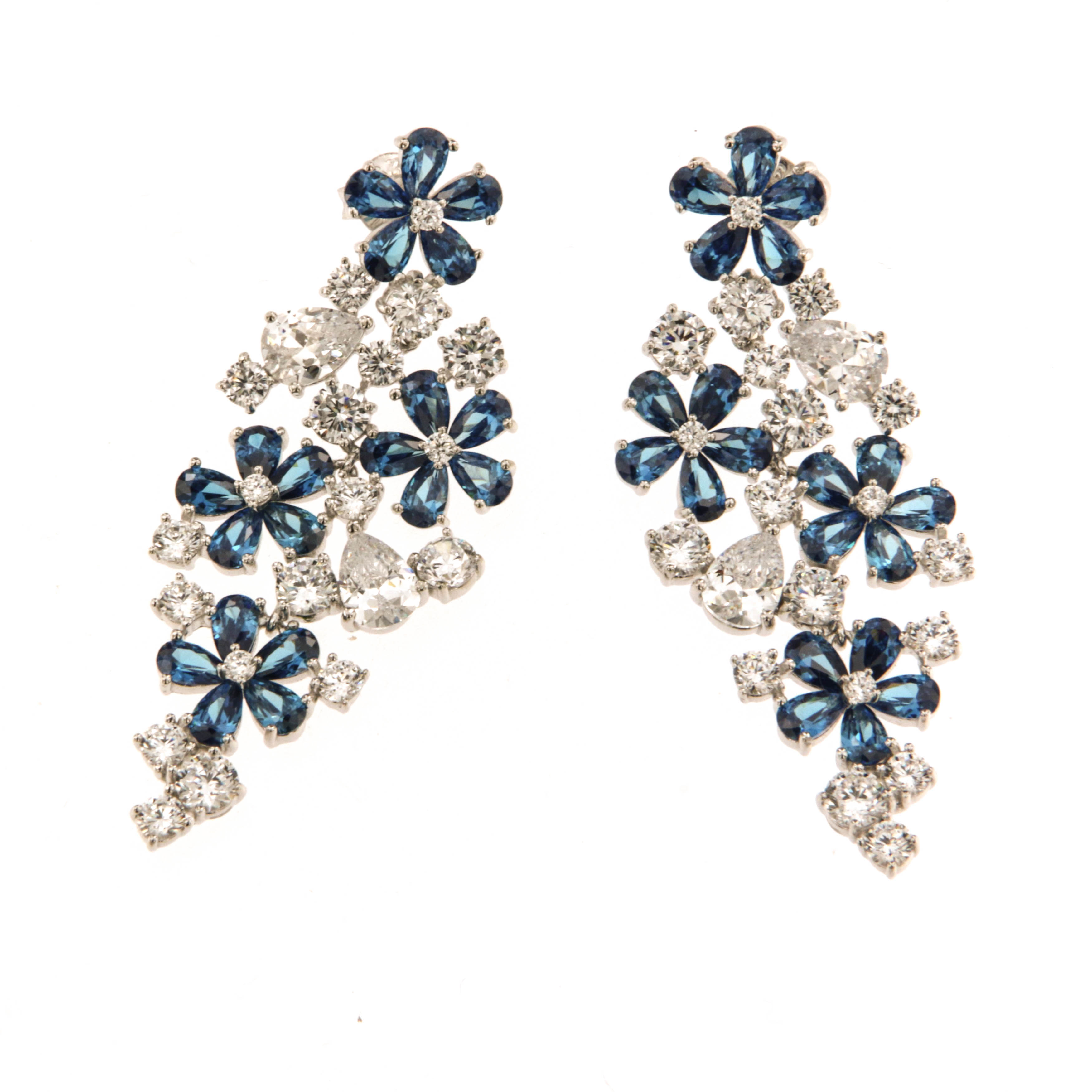 Обеци от " Jacklin hugasian " сребро със сапфир и цирконий.Дължина обеци 5.2 см. , широчина обеци 2.00 см.