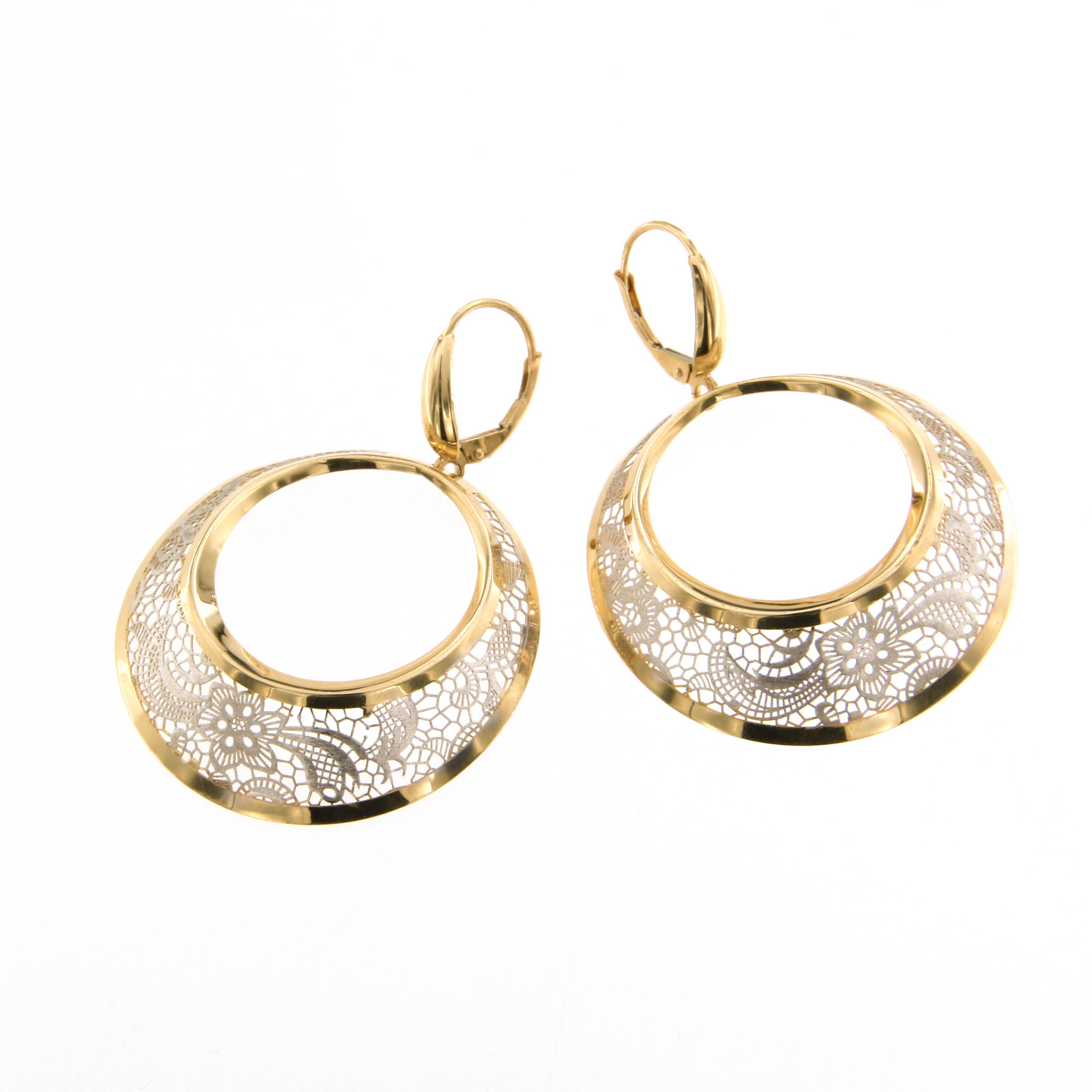 Обеци от " Jacklin hugasian " в бяло и жълто злато. Произход Италия.