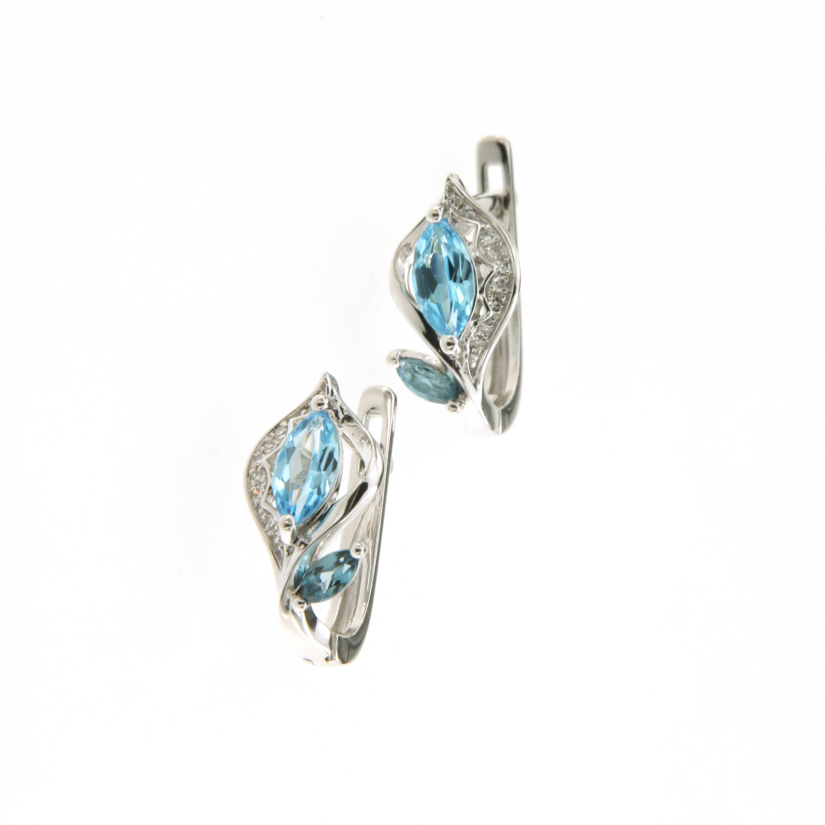 Обеци от "Jacklin hugasian" в бяло злато с диаманти и естествен син топаз