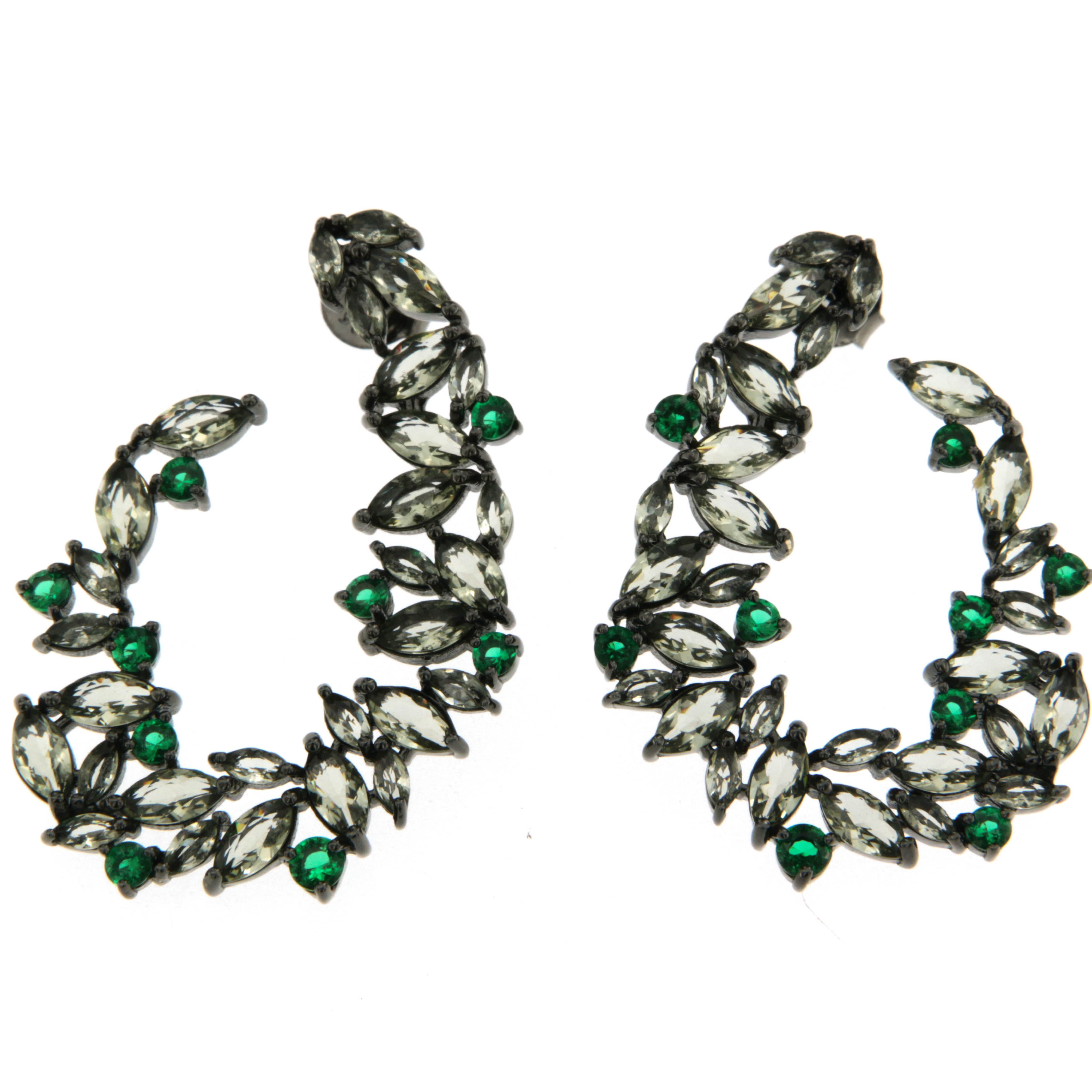 Обеци от "Jacklin hugasian" в оксидирано сребро с изумруд и кварц. Дължина обеци 4.00 см., широчина обеци 2.5 см.