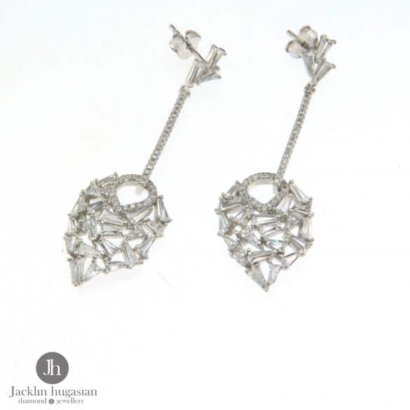 Обеци от "Jacklin hugasian" в сребро с цирконии. Дължина обеци 5.00 см., широчина 1.5 см.