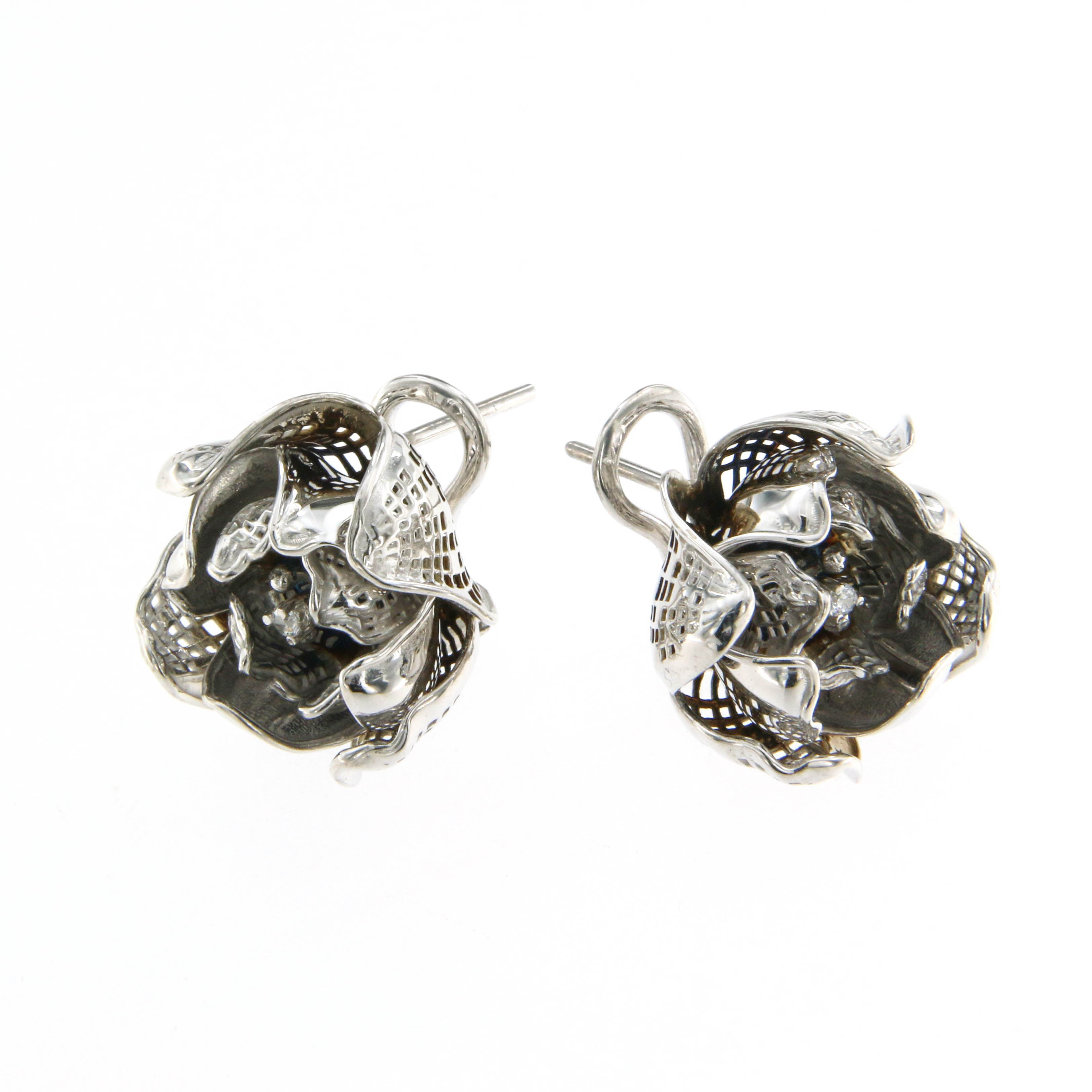 Обеци от "Jacklin hugasian" в сребро с филигранна обрабока и циркони. Колекция "Roberto Bravo".