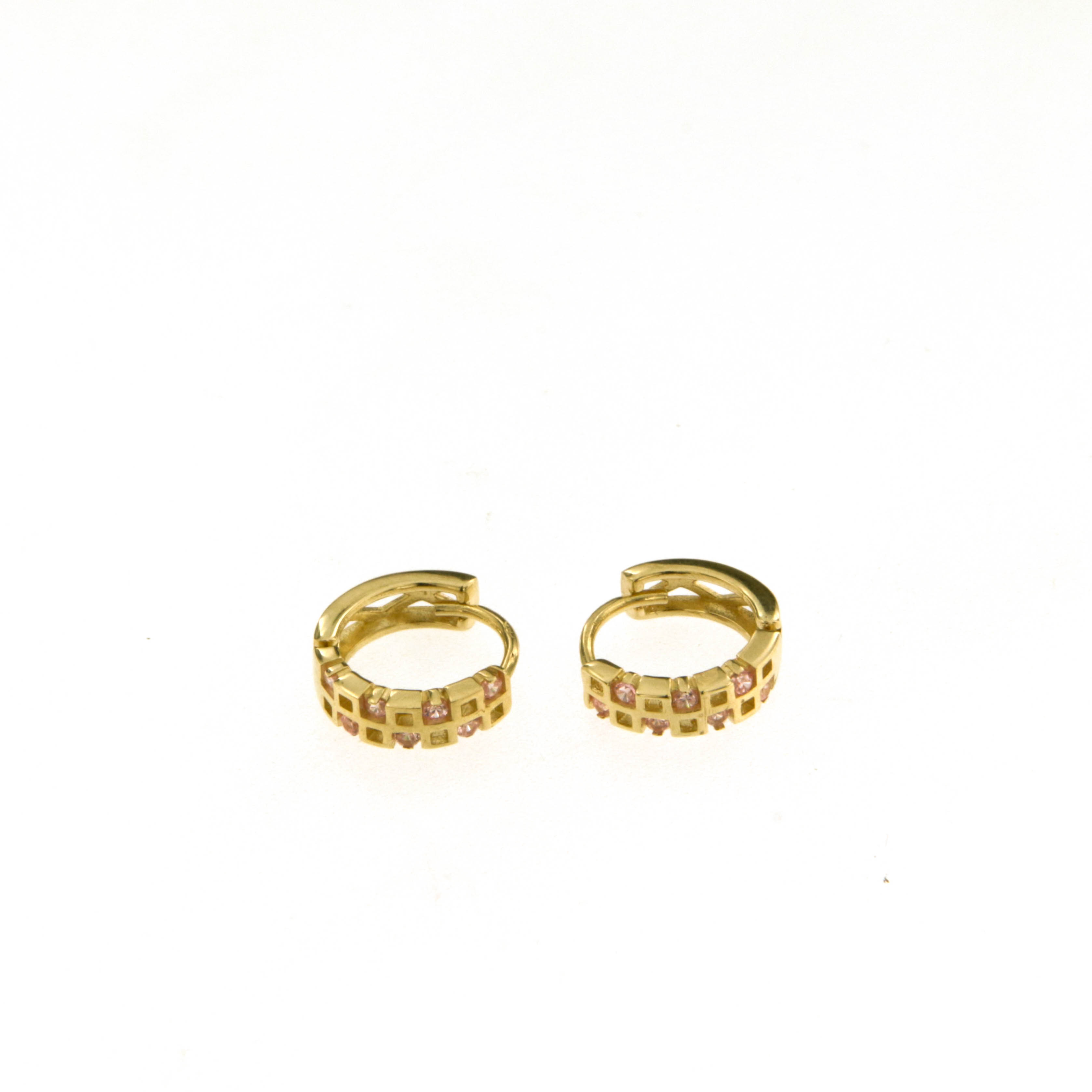 Обеци от " Jacklin hugasian " в жълто злато с розов кварц.Диаметър 0.8 см.Произход Италия.