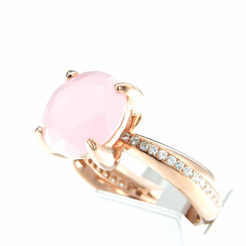 Пръстен от" Jacklin hugasian " розово сребро с цирконий и розов кварц.
