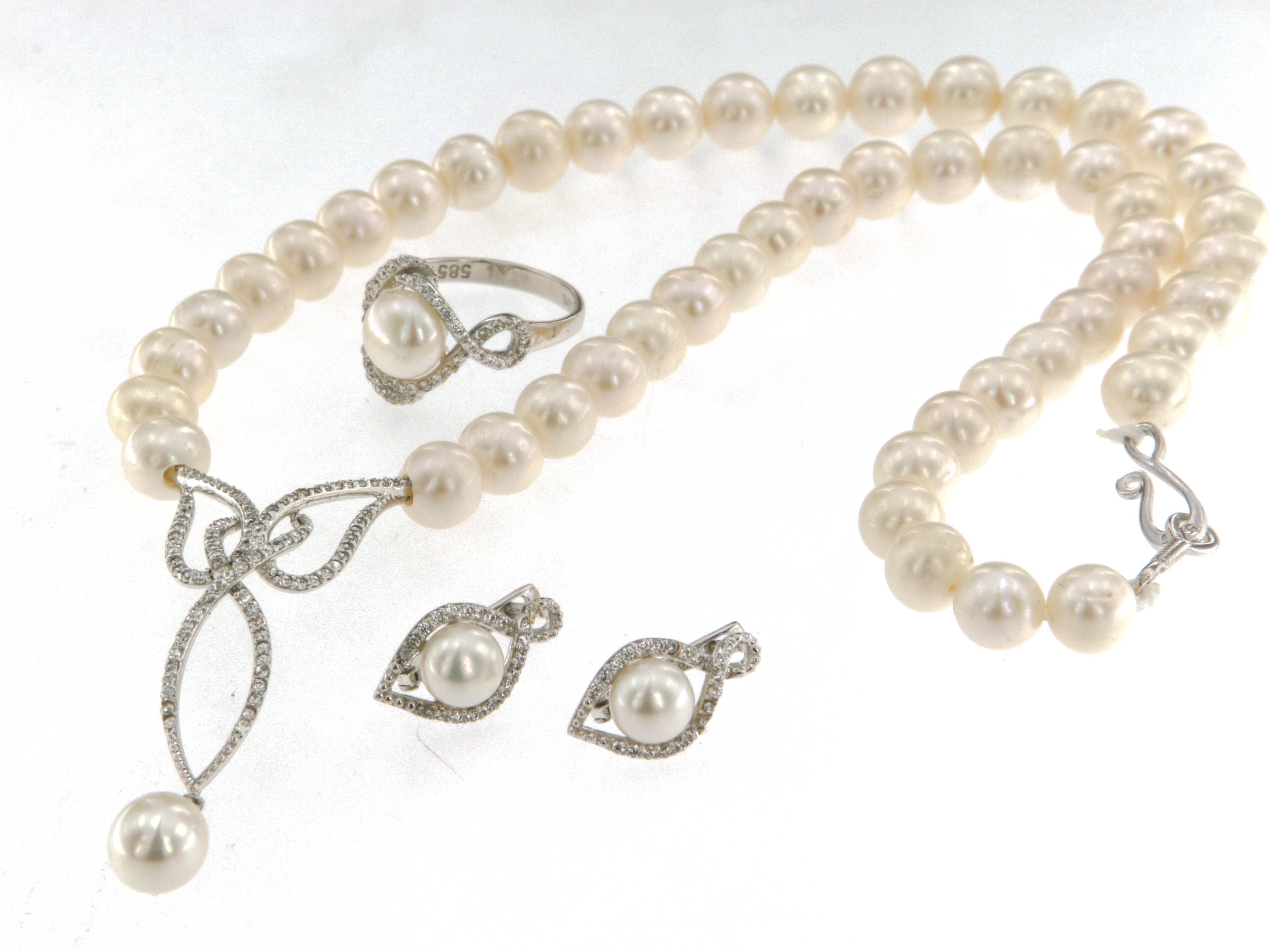 Пръстен от "Jacklin hugasian" в бяло злато с циркони и култивирана бяла перла.