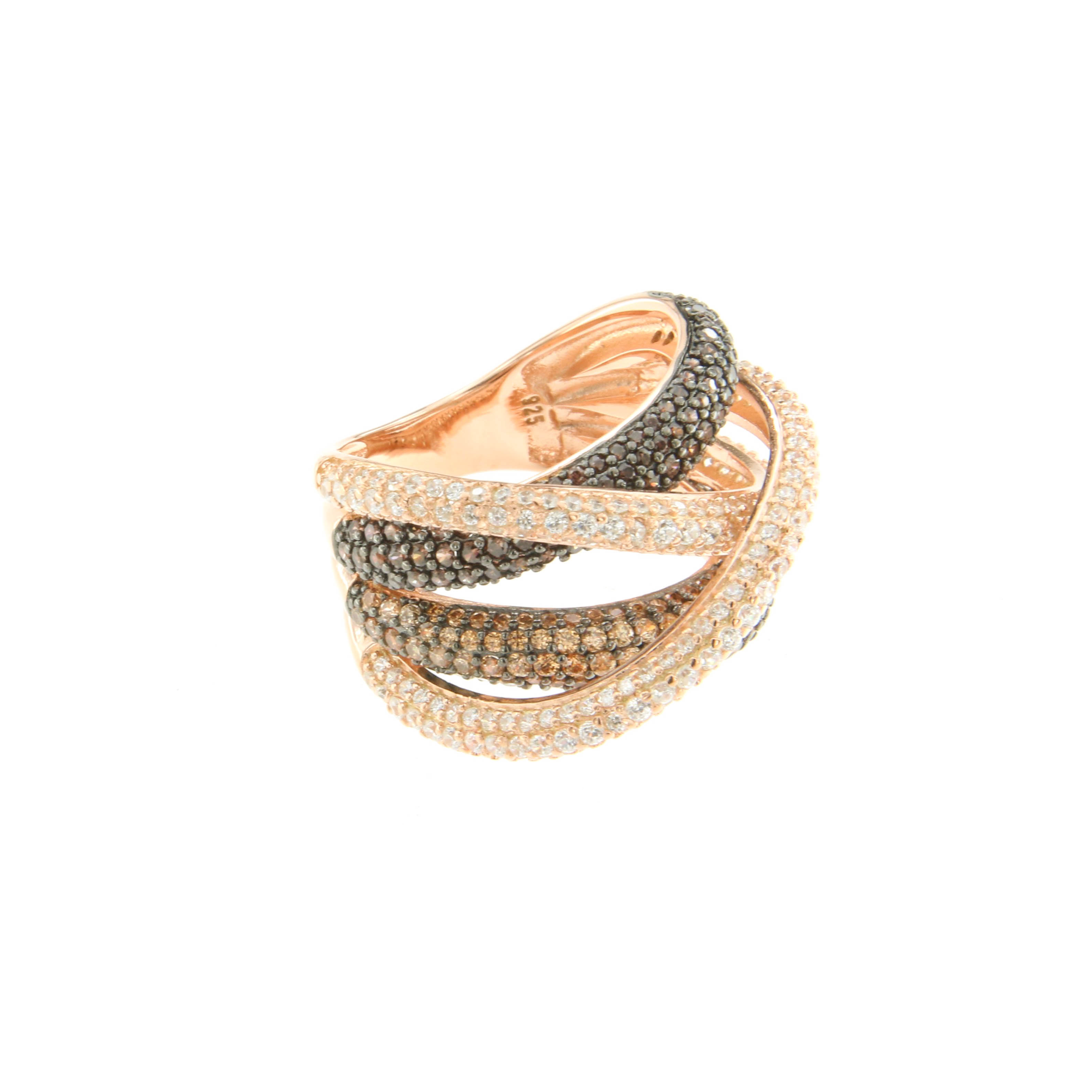 Пръстен от “Jacklin hugasian” в розово сребро с циркон,цитрин и опушен топаз.