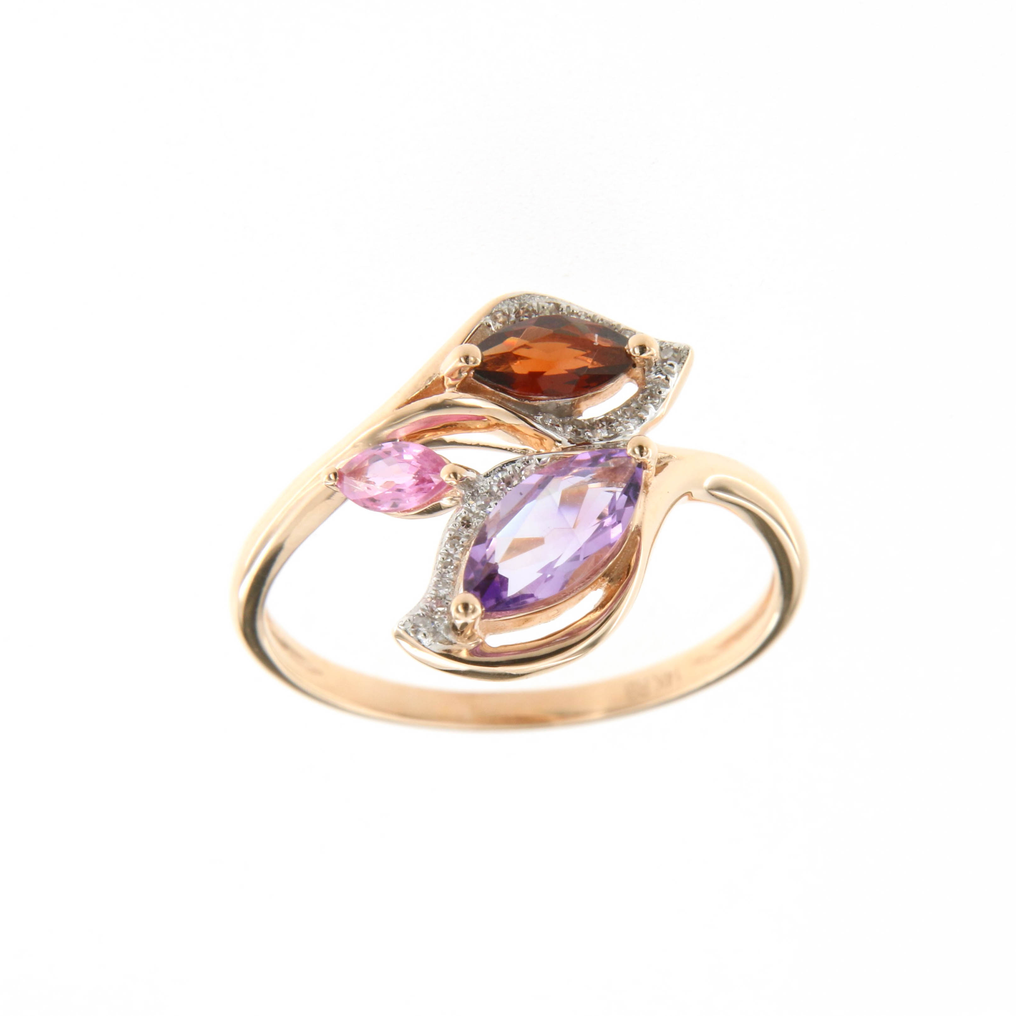 Пръстен от "Jacklin hugasian" в розово злато с диаманти, гранат и аметист