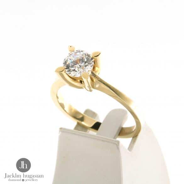 Пръстен от "Jacklin hugasian" в жълто злато с цирконии.