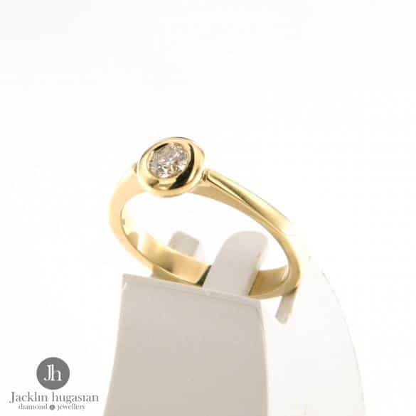 Пръстен от " Jacklin hugasian " в жълто злато с диамант.