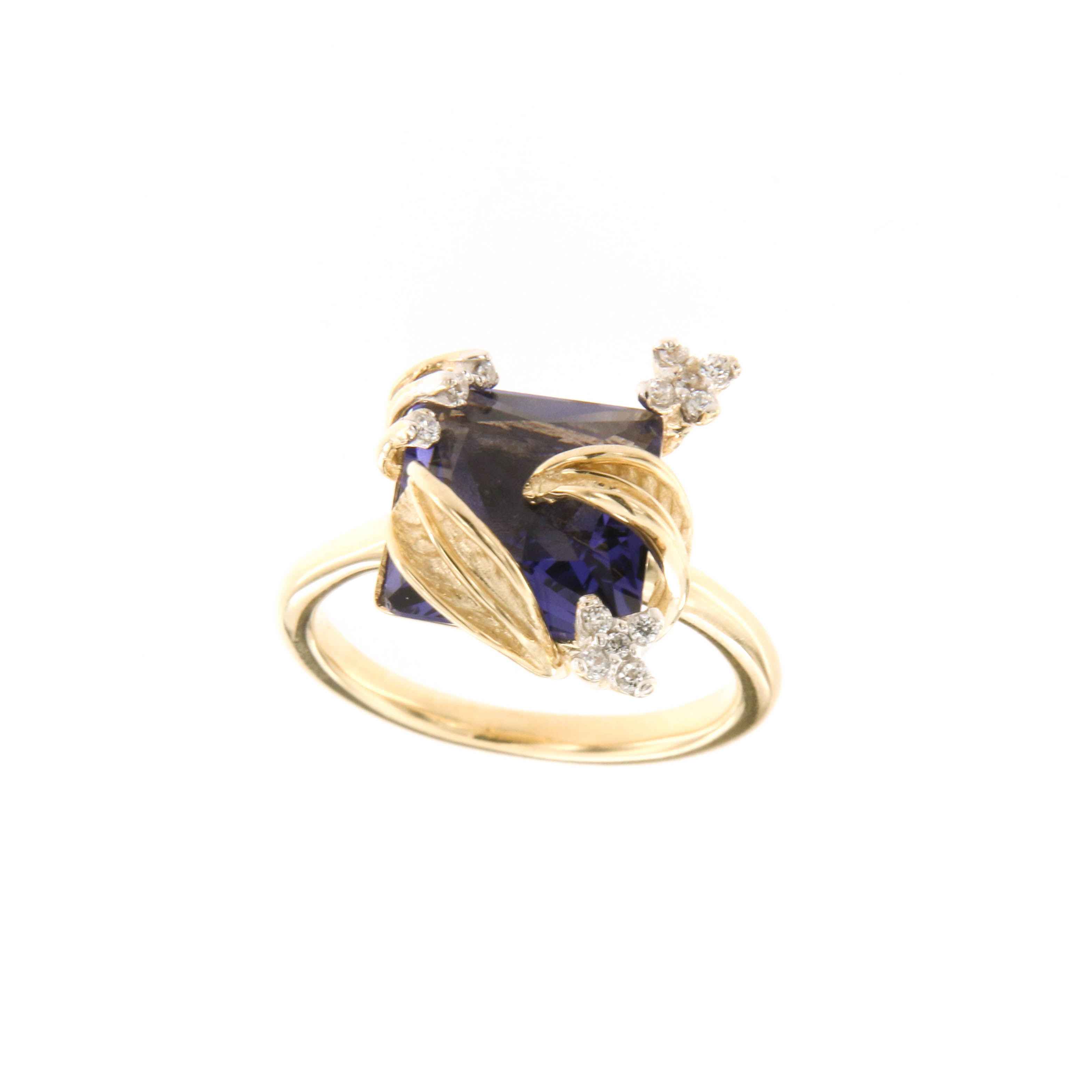 Пръстен от "Jacklin hugasian" в жълто злато със син кварц и циркони.